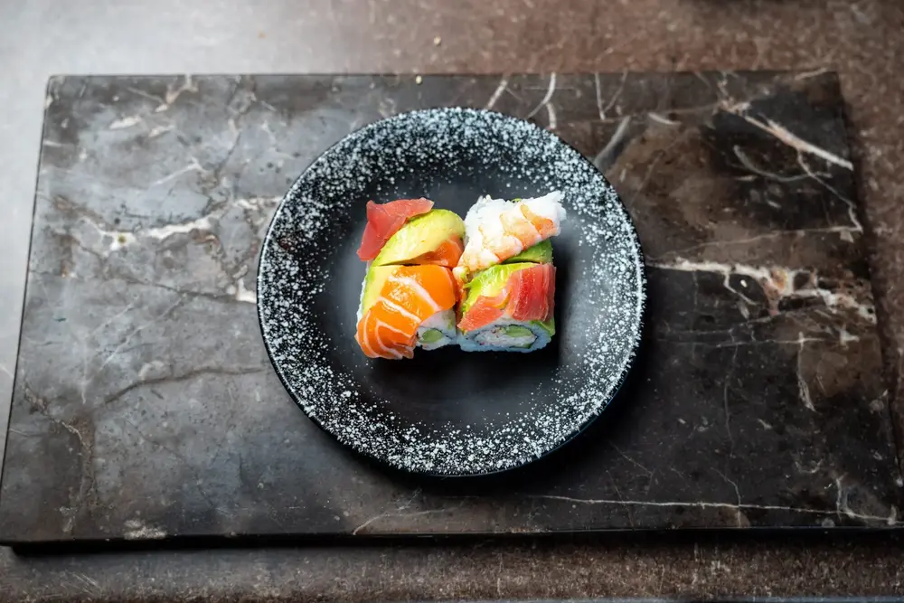 (8 stk.) Surimi, avocado, agurk, mayo, laks, tun, reje og avocado.